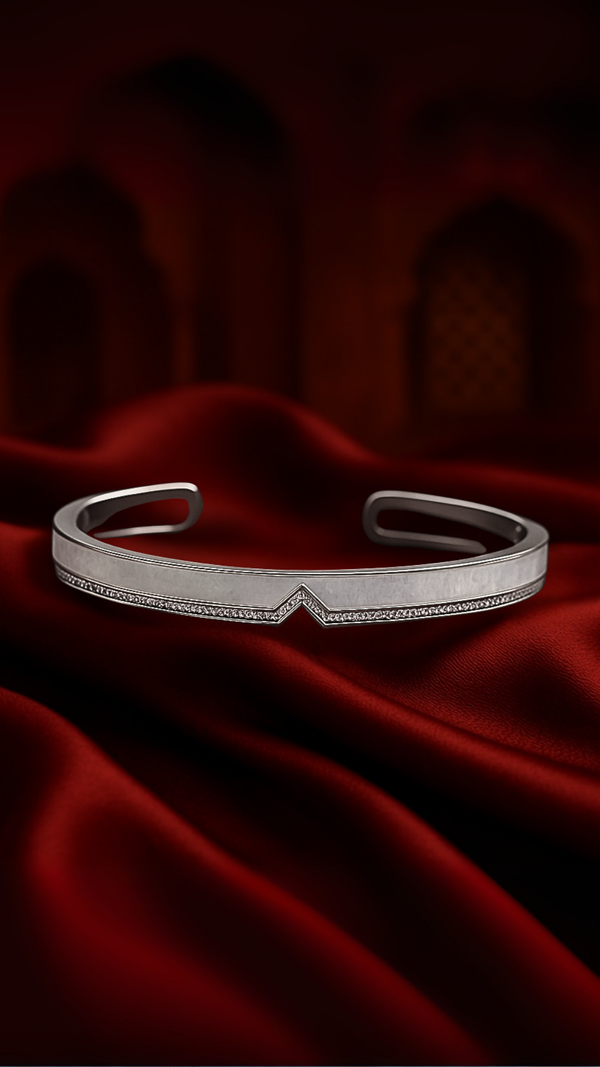 This imitation silver cuff bracelet embodies refined minimalism. The pristine white enamel inlay is outlined with shimmering cubic zirconia, delivering understated brilliance. Its open design ensures comfort, while the subtle detailing makes it versatile enough to pair with both casual and formal ensembles. A perfect choice for modern women who appreciate timeless elegance with a contemporary twist.