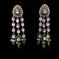 The Three Line Polki Dangler earrings are crafted to exude sophistication and grandeur. Featuring three cascading lines of Polki stones with pearl accents, they create a chandelier-like effect that is perfect for special occasions. These earrings are a symbol of traditional artistry blended with modern finesse. With their weight and design, they are best suited for weddings, parties, and festivals, offering both durability and a majestic presence.